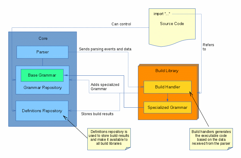 add their own specialized grammar or build handlers. The Core also contains a