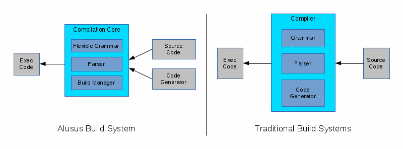 Instead of depending on a monolithic compiler, Alusus uses a compilation system